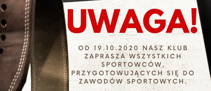 Wiemy, że z niecierpliwością czekacie na informację w sprawie funkcjonowania naszego klubu. Musieliśmy wszystko dopracować, abyście bezpieczne i zgodnie z wytycznymi, mogli powrócić do treningów - informuje Fitness Point na swoim FB. - Od 19.10.2020 (poniedziałek), nasz klub jest czynny w godzinach 6:00 - 21:00 i mogą z niego korzystać WYŁĄCZNIE osoby przygotowujące się do zawodów sportowych. Przy wejściu należy podpisać stosowne oświadczenie - bez tego nie będziecie mogli skorzystać z naszej siłowni. Póki co, nie obowiązują zapisy na wejście, chyba, że będzie zbyt wielu chętnych - wtedy obsługa zmuszona będzie do wstrzymania ruchu, aż do opuszczenia klubu przez odpowiednią liczbę osób. Na sali dostępny dla Was będzie trener, aby móc skonsultować z nim swój trening przygotowujący do wybranych przez Was zawodów - dodaje.