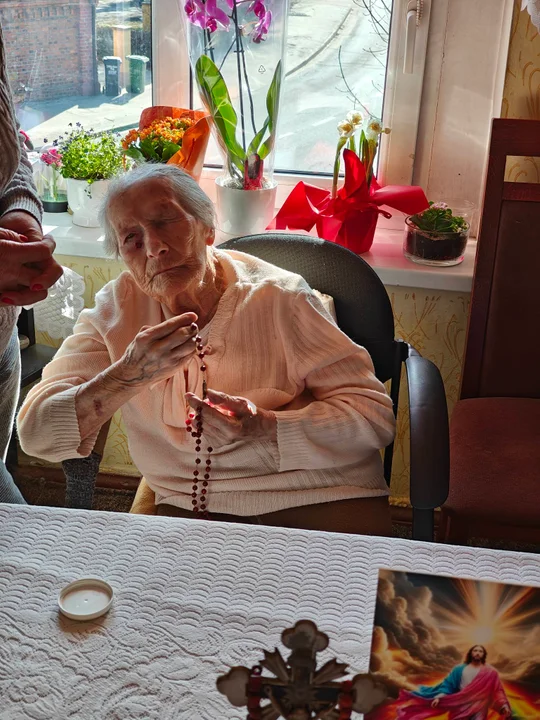 Seniorka jest towarzyską osobą. Lubi gości. Z okazji 103 urodzin odwiedził ją odwiedził miejscowy proboszcz Dominik Juszczak.