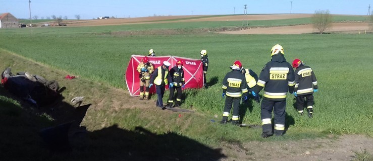 Wielkopolska. Śmiertelny wypadek w okolicy Krobi. Auto osobowe dachowało w rowie. Wezwano śmigłowiec LPR, niestety kierowcy nie udało się uratować.