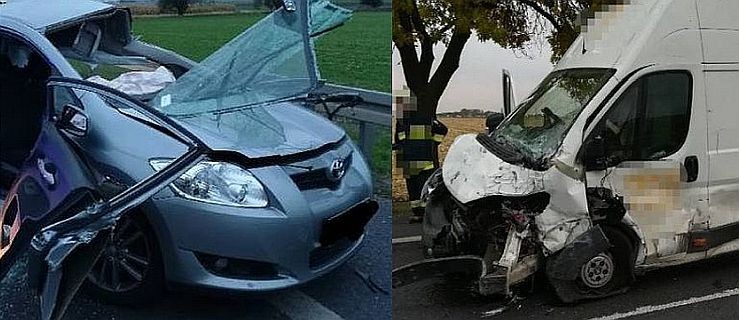 Kierowca toyoty auris z niewiadomych przyczyn zjechał na sąsiedni pas ruchu i zderzył się bokiem z nadjeżdżającym busem.