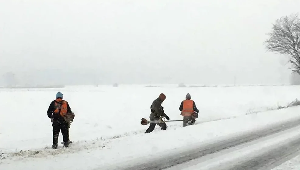 Koszenie trawy w śniegu przy drodze 309 odbywało się przez dwa dni - 4 i 5 grudnia.