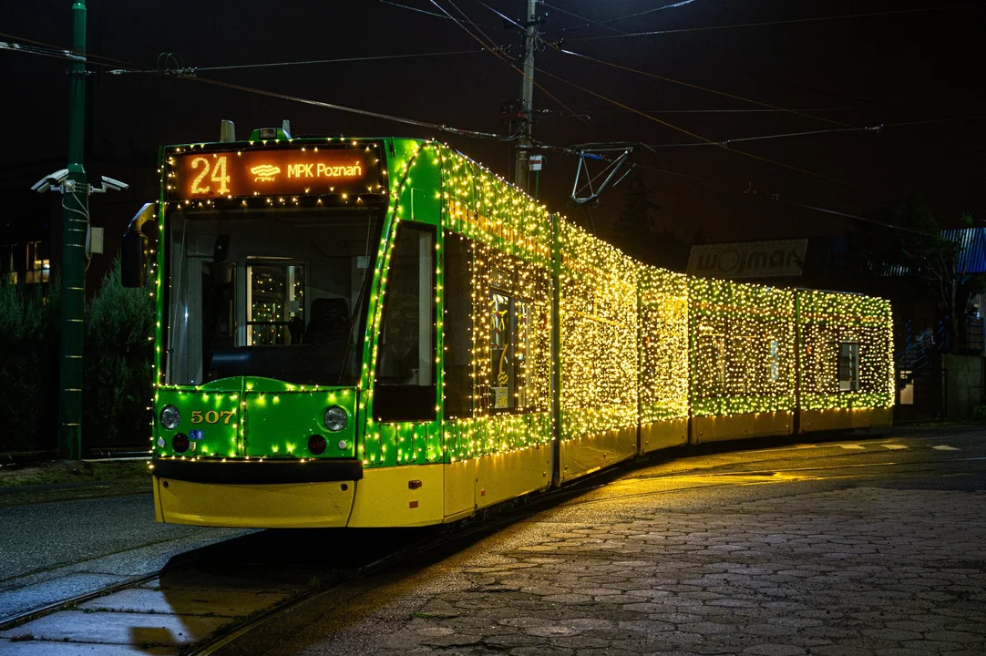 Świąteczny tramwaj zacznie jeździć już dziś (17 listopada) na linii 24. Pierwszy kurs ruszy o 15:50 spod zajezdni przy ul. Głogowskiej, a pełną trasę z pasażerami rozpocznie o 16:00 z pętli Górczyn PKM w kierunku centrum.