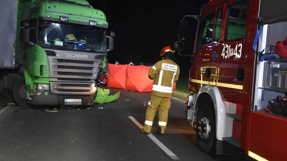 Do tragedii doszło dziś, ok. godz. 16.20. Na DW 434 samochód osobowy zderzył się z ciężarówką. Na miejscu pracują służby.
