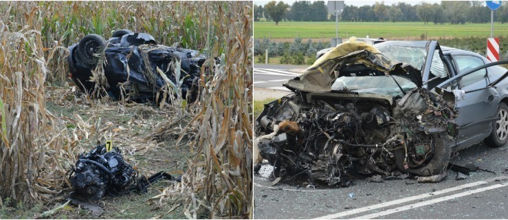 35-latek poniósł śmierć w wypadku. Siła zderzenia była tak duża, że peugeot co prawda pozostał na miejscu, ale skala zniszczeń samochodu była ogromna. Seat natomiast wypadł z drogi na pole kukurydzy.