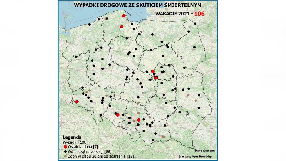 Podobnie jak w dwóch ostatnich latach, każdego dnia, przez okres wakacji policjanci prezentują mapę Polski z liczbą wypadków drogowych ze skutkiem śmiertelnym wraz z informacją o zdarzeniu (z lokalizacją, ogólną informacją dotyczącą liczby ofiar, rodzaju uczestnika ruchu drogowego oraz rodzaju zdarzenia) z ostatniej doby.