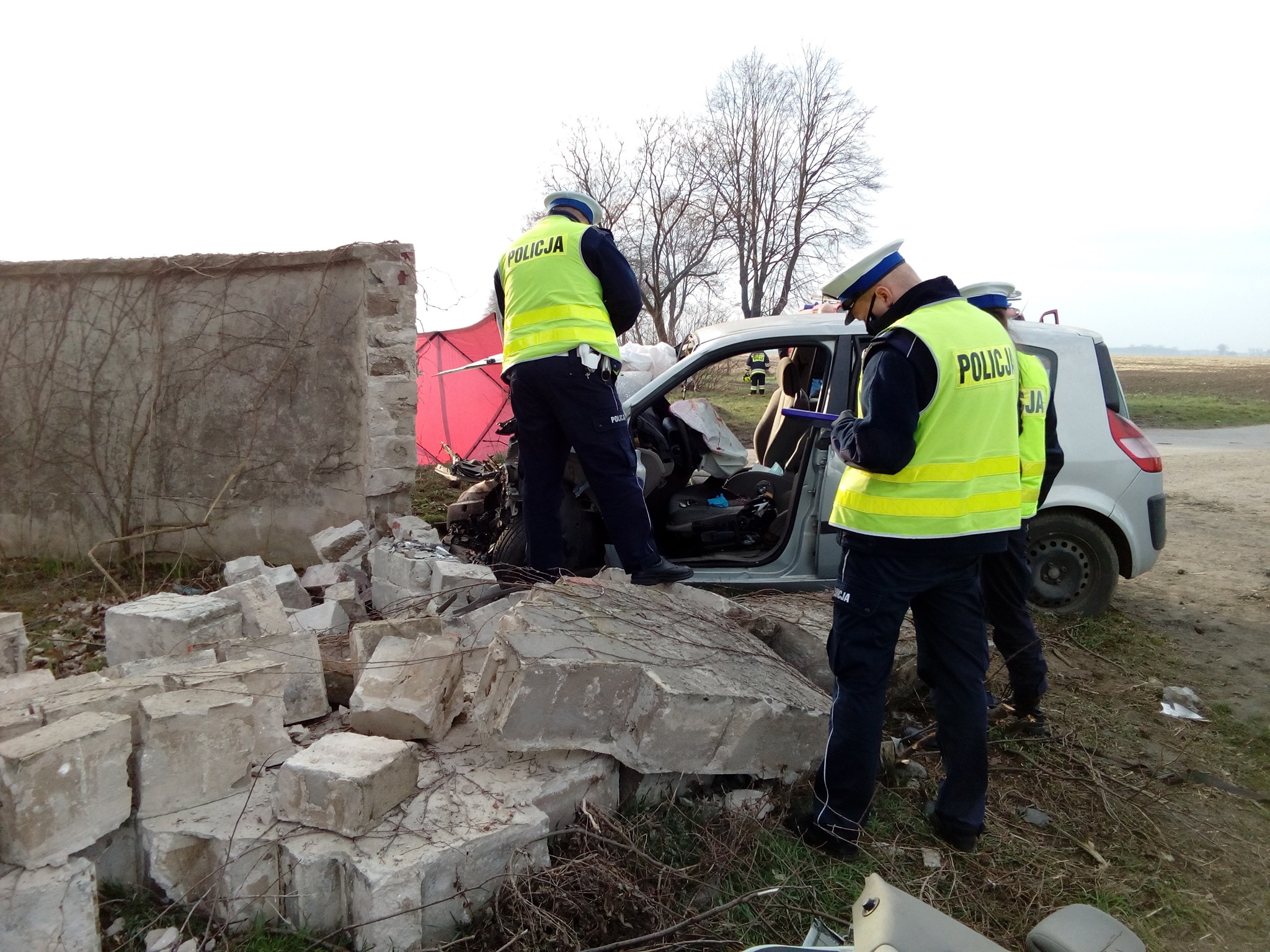 Okoliczności zdarzenia, do którego doszło pod Śremem wyjaśnia policja pod nadzorem prokuratora. Póki co wiadomo tylko tyle, że samochód osobowy uderzył w mur. Wypadek okazał się tragiczny w skutkach.
