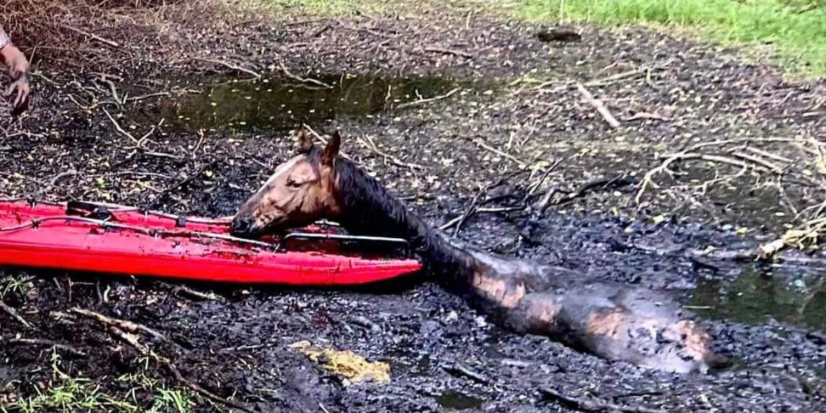 Trzy konie ugrzęzły w bagnie. Mogły utonąć