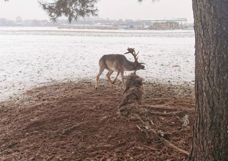 Zwierzę zaplątało się porożem w częściowo zakopane w ziemi siatki z propylenu, którą są powszechnie używane w rolnictwie, między innymi do zawijania słomy w baloty