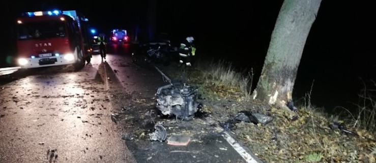 Z relacji policjantów wynika, że kierowca volkswagena golfa jechał za szybko i na łuku drogi nie zapanował nad pojazdem, wpadł w poślizg i uderzył w przydrożne drzewo. Siła uderzenia była tak duża, że z osobówki wypadł silnik.
