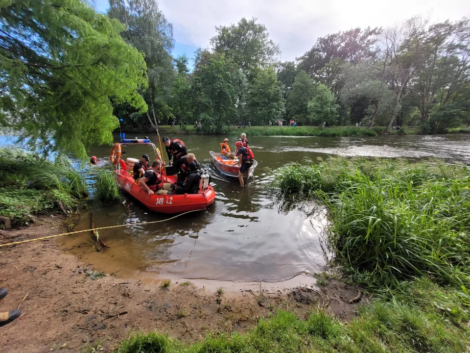 Dziecku udało się wydostać na brzeg o własnych siłach, natomiast kobieta zniknęła pod lustrem wody. Strażacy udzielili pierwszej pomocy poszkodowanemu chłopcu, którego następnie przekazano pod opiekę przybyłego na miejsce Zespołu Ratownictwa Medycznego. Równocześnie ratownicy ubrani w suche ubrania do pracy w wodzie oraz kamizelki ratunkowe rozpoczęli poszukiwania kobiety w rzece