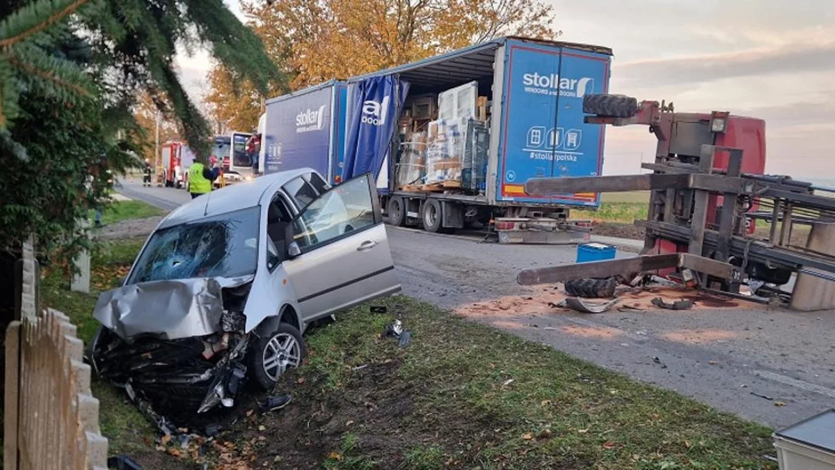 Do szpitala przewieziono 68-latka z powiatu pleszewskiego, 37-letniego kierowcę ciężarówki oraz 53-letniego operatora wózka widłowego. Po zdarzeniu ciężarówka zajmowała pas w kierunku Jankowa Pierwszego, samochód osobowy wylądował w rowie po drugiej stronie, a wózek widłowy przewrócił się na jezdni, blokując pas ruchu.