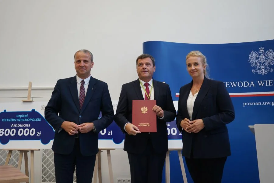 Wojewoda Michał Zieliński, w obecności minister zdrowia - Katarzyny Sójki - podpisał umowy z dyrektorami szpitali w Ostrowie Wielkopolskim i Kępnie na przyznanie dofinansowania o w wysokości 2,4 mln zł na zakup czterech karetek pogotowia, z wyposażeniem.