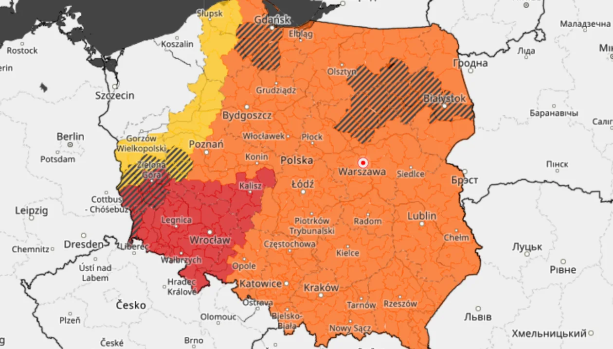 Alert obowiązuje dzisiejszej nocy (z 18 na 19 sierpnia) i przez niemal cały jutrzejszy dzień - do godz. 18.00.