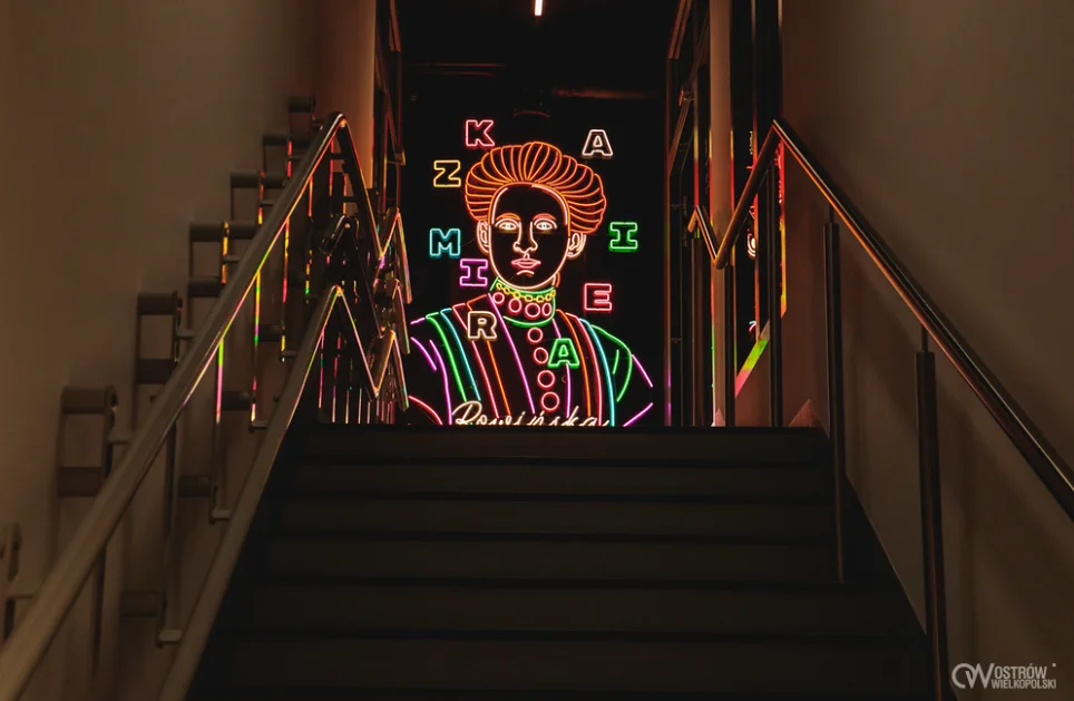 Patronką placówki jest Kazimiera Rowińska, której wizerunek obecny jest w bibliotecznej przestrzeni. To postać niezwykle zasłużona dla ostrowskiej kultury i życia społecznego. Przez lata pozostawała nieco w cieniu swojego męża, Stefana Rowińskiego — pierwszego polskiego burmistrza Ostrowa — jednak jej wkład w budowanie lokalnej tożsamości był ogromny.
