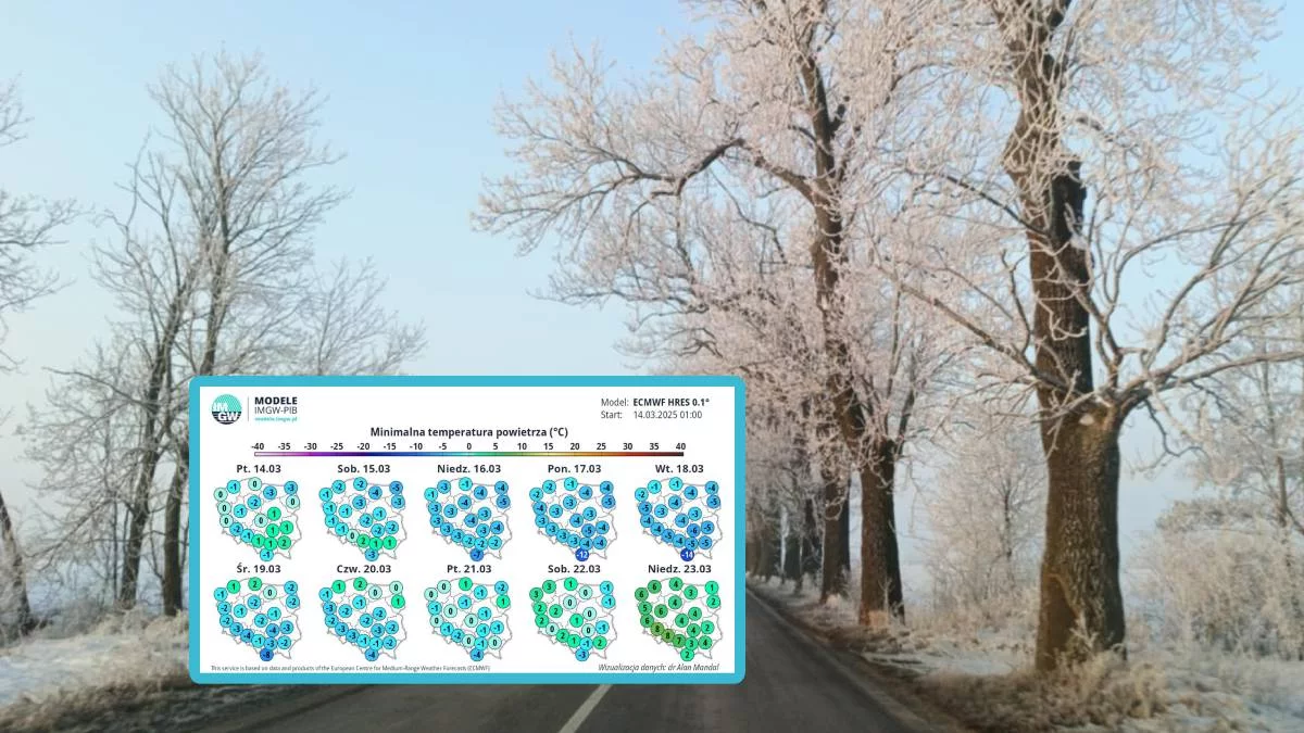 Prognozowany jest spadek temperatury powietrza w nocy z czwartku na piątek do około -1°C, przy gruncie do -2°C, w kolejnych nocach do około -4°C, przy gruncie do -6°C. Temperatura maksymalna w ciągu dnia przeważnie od 5°C do 8°C - ostrzegają synoptycy.